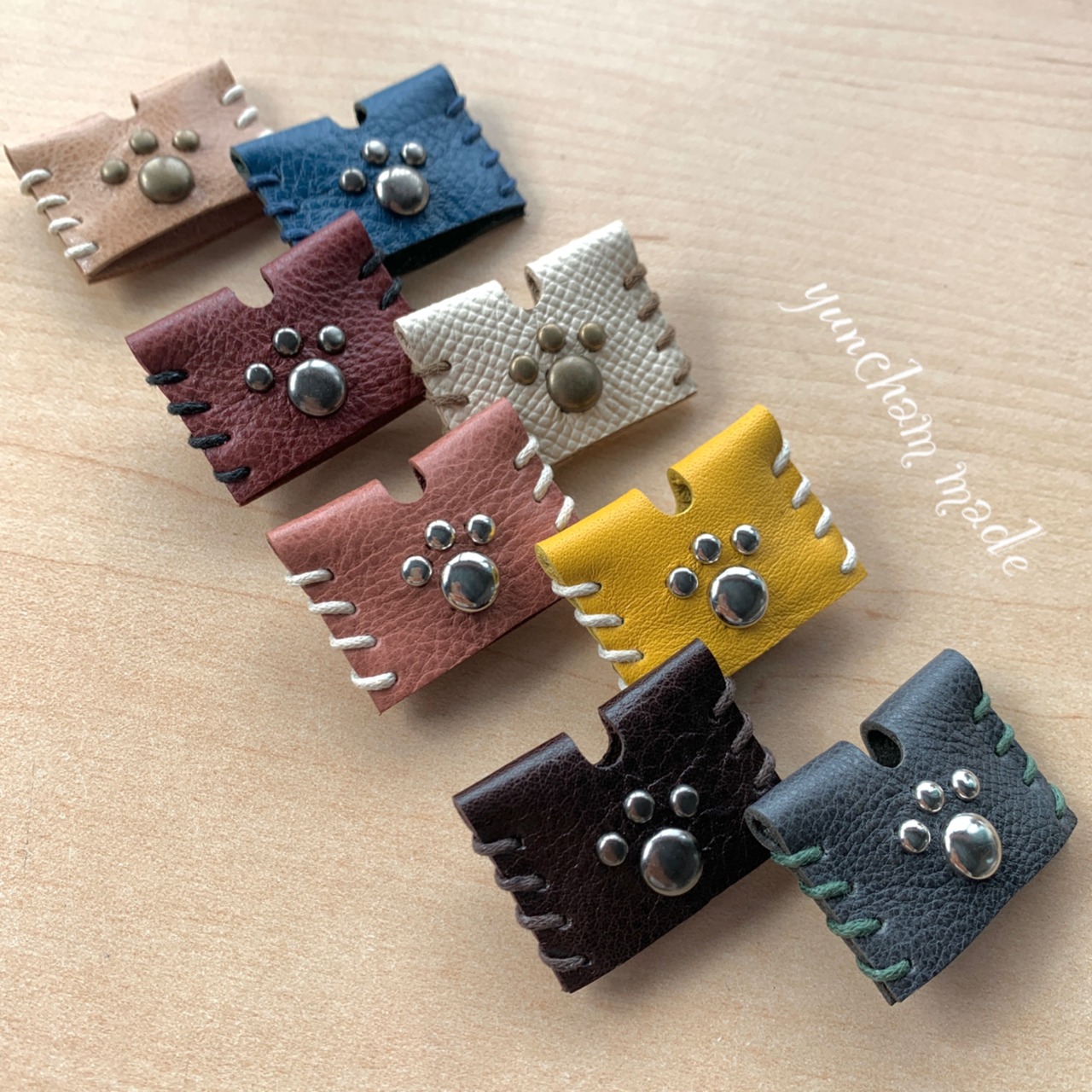 yuncham-madeトレードマークの『魅せる糸*.』一つ一つ手縫いで仕上げています。