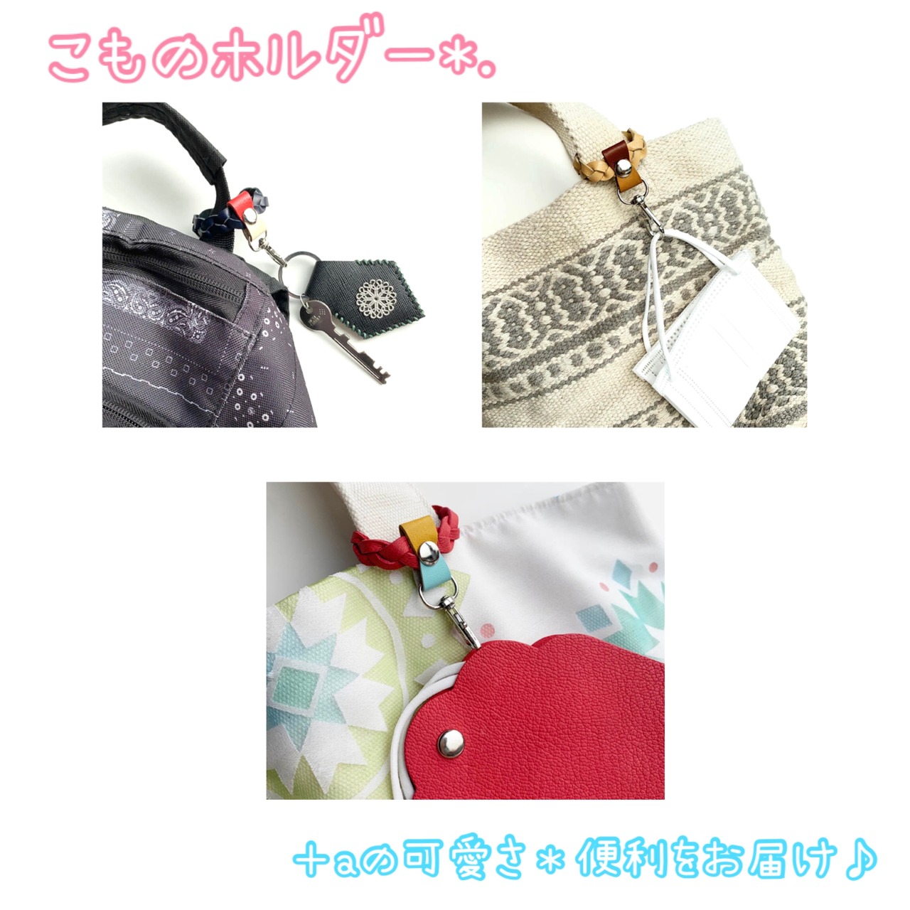 ・二重リングが付いているので、カメラの紐や金具に直接付けることも可能ですが、yuncham madeで販売している『こものホルダー』『こものホルダーmini』『ロングキーホルダー』と組み合わせて使う事もできます。