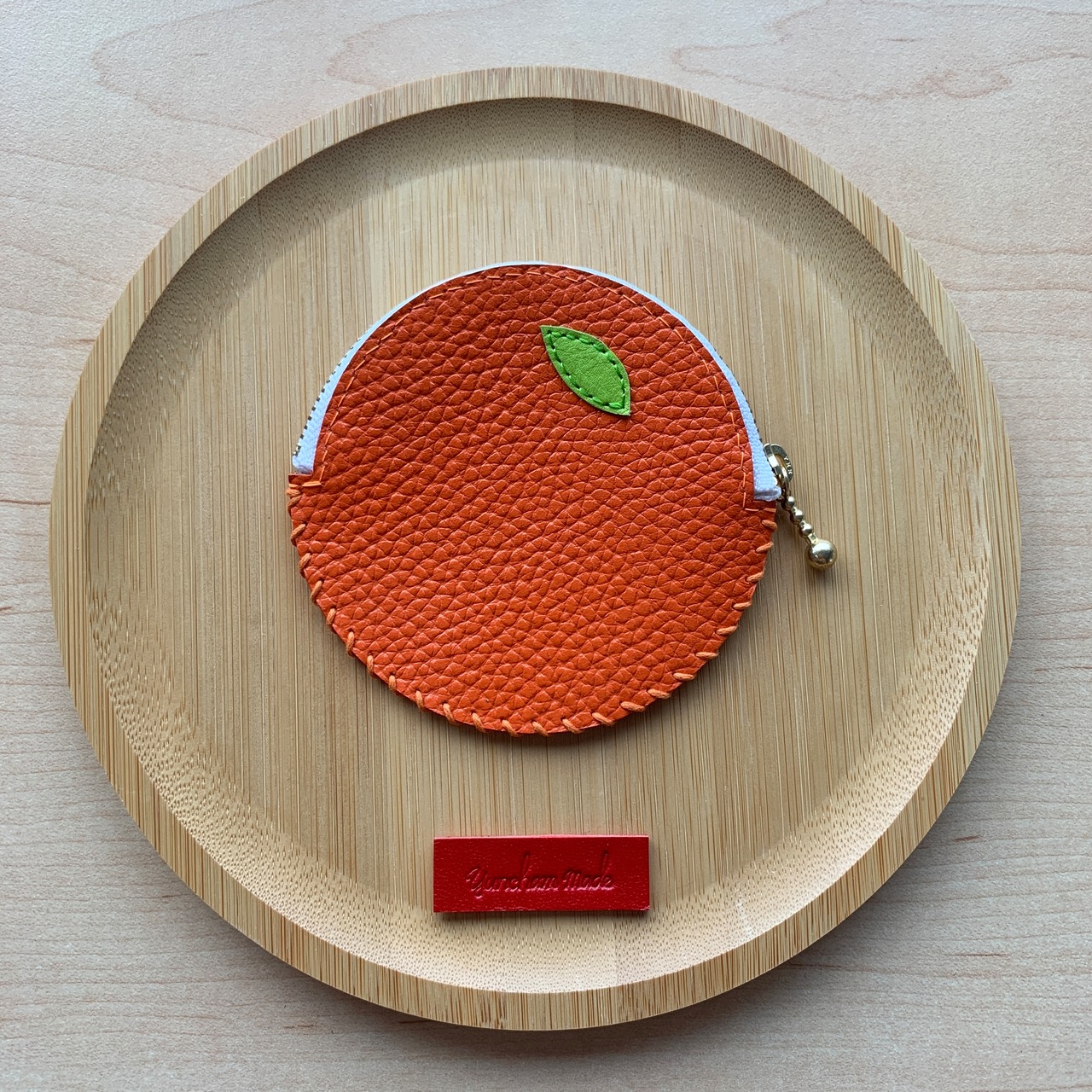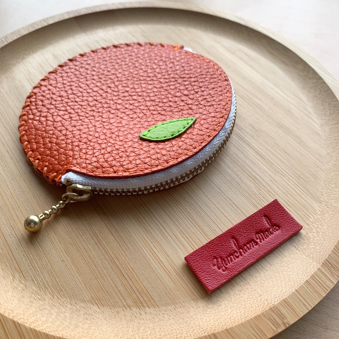 ファスナーは白に統一し、ユンチャムメイドのトレードマーク「魅せる糸」はフルーツのレザーに合わせた色を使っています。
